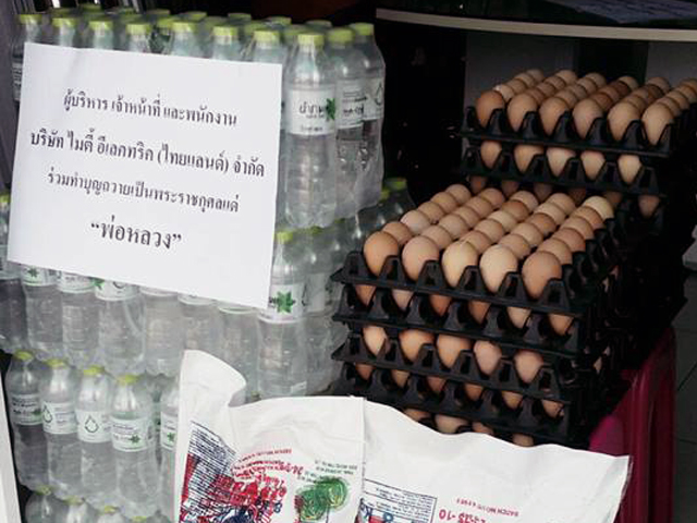 บริษัท ไมตี้ อีเลคทริค (ไทยแลนด์) จำกัด ได้ขอมีส่วนร่วมในการทำความดี เพื่อถวายเป็นพระราชกุศลแด่พระบาทสมเด็จพระปรมินทรมหาภูมิพลอดุลยเดชฯ โดยการมีส่วนร่วมในการบริจาคอาหารและน้ำดื่มให้แก่ประชาชนที่ไปร่วมเคารพพระบรมศพ และเป็นเจ้าภาพสวดพระอภิธรรม เพื่อน้อมรำลึกถึงพระมหากรุณาธิคุณและถวายเป็นพระราชกุศลแด่พระบาทสมเด็จพระปรมินทรมหาภูมิพลอดุลยเดช